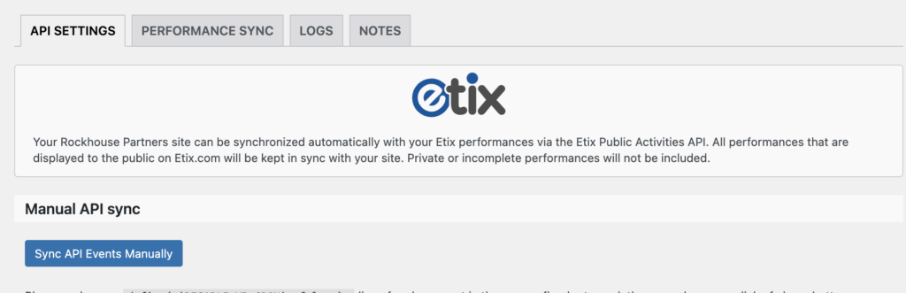 Once this has been pressed, please go back to the first tab (API Settings) and click the button Sync API Events Manually.
