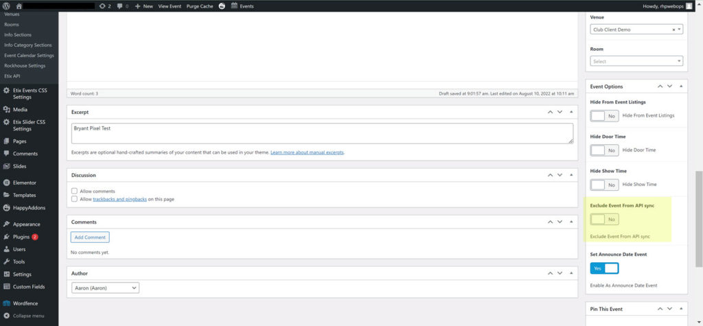 Why would you want to exclude an API event from syncing with box office? You’ve made manual updates to event fields that sync with box office and you don’t want them to be overwritten.